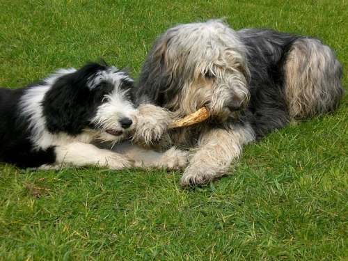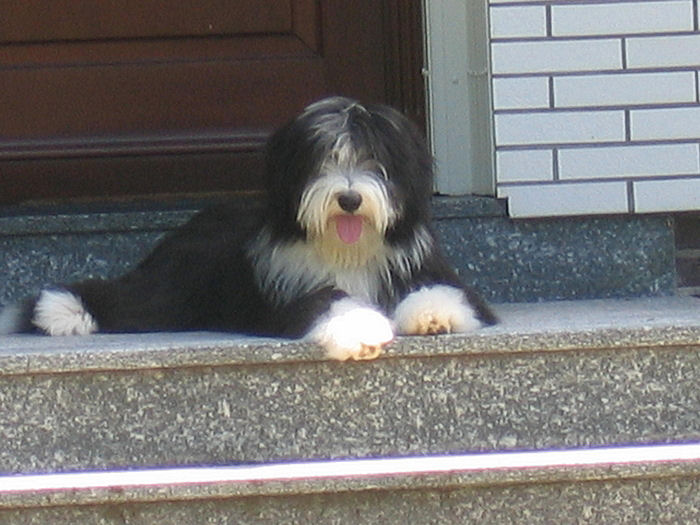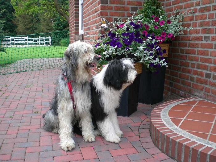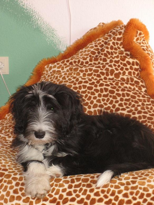 Emily & Cloud "Sky"Am 13.12. erblickten 6 schwarz-weiße Bearded-Colliekinder (eine Hündin und fünf Rüden) das Licht der Welt. Leider überlebte ein Rüde die Geburt nur um ein paar Stunden. Der Mama und den anderen Babys (Geburtsgewichte zwischen 400 und 470 Gramm) geht es glänzend.